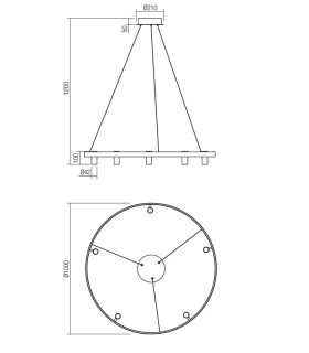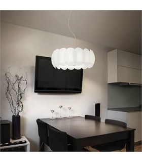 Handmade curved glass suspension lamp, available in several finishes. Five lights.