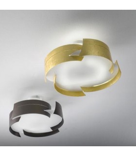 Steel ceiling lamp available in white, bronze, gold leaf and silver leaf finishes and in two sizes.