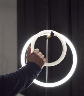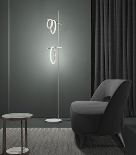 Supension/ floor lamp for interior equipped with SMD LEDs, structure of aluminum and metal painted in mat black, diffuser of opal acryl.