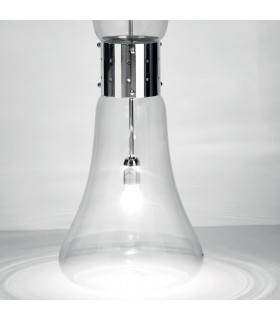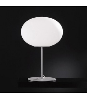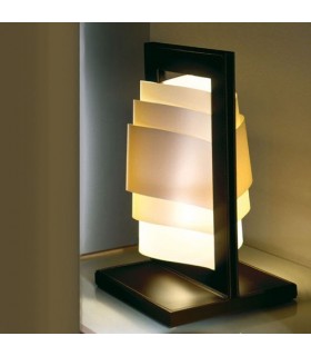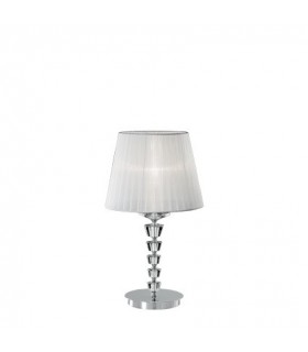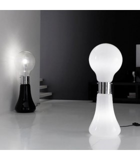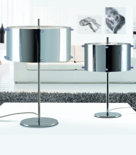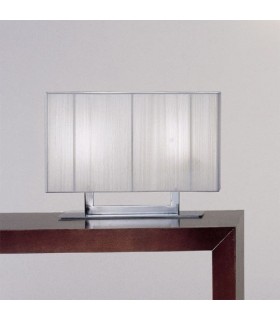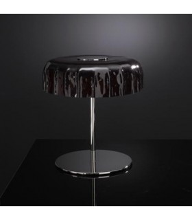 Table lamp consisting of a lampshade made up of silk threads, available in several colors.