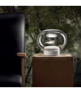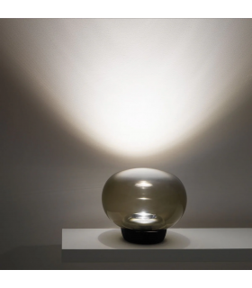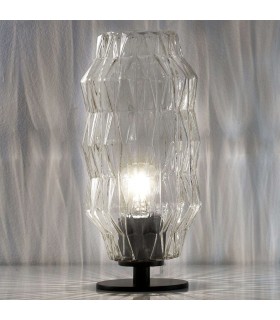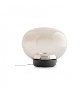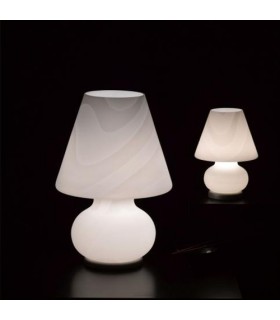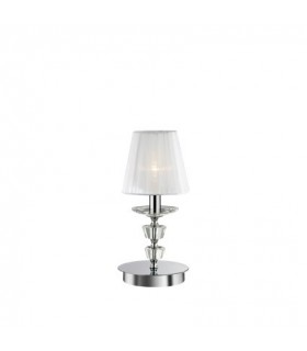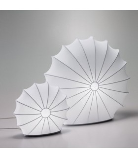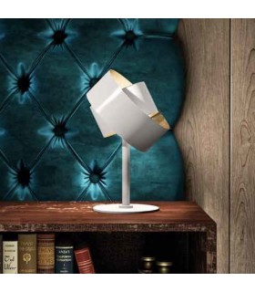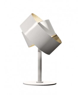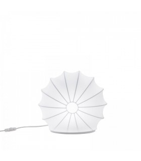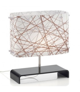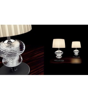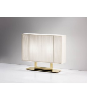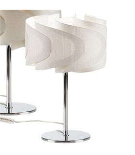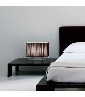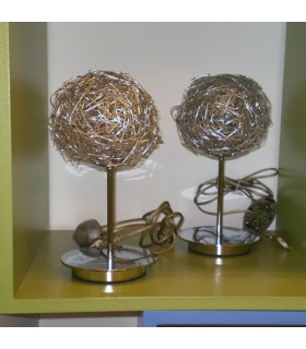 Table lamp consisting of a lampshade made up of silk threads, available in several colors and with polished chrome frame or gold.