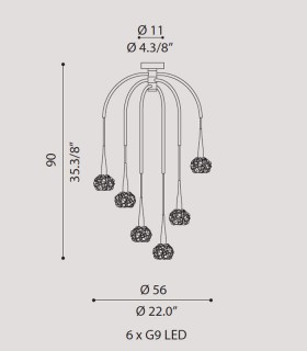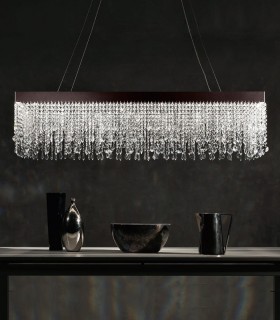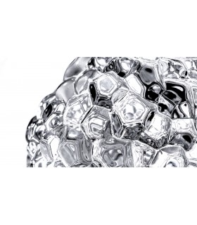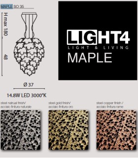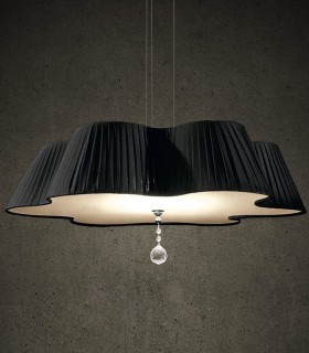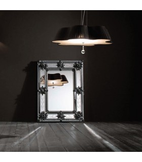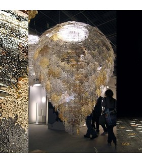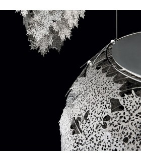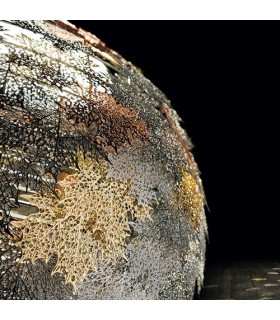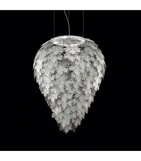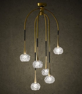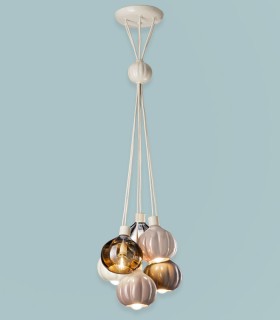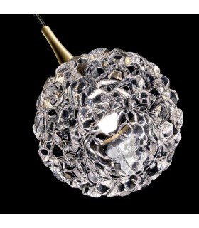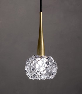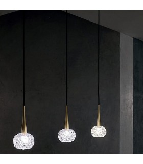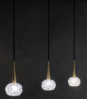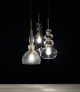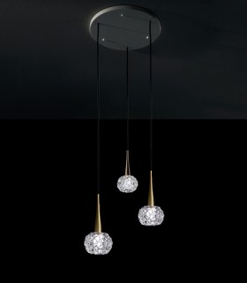 Three lights blown glass suspension lamp with frame in gold leaf.