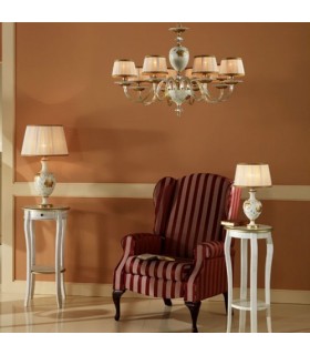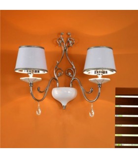 Wall lamp with refined lasmpshades in ivory creponne. It is available with or without lampshades.