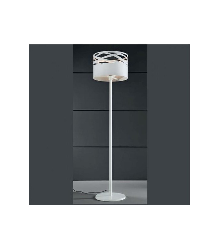 The Chimera floor lamp features a tubular frame, in white painted and laser cut metal, characterized by strips that intertwine to invent refined plays of lights and shadows, revealing the fascination of an inviting and diffuse light emission.