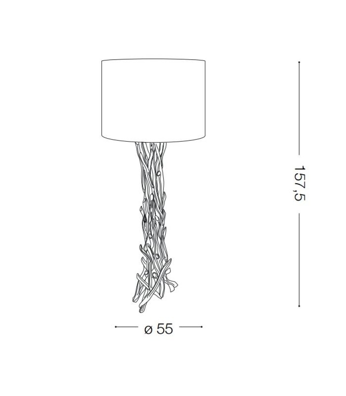 Driftwood PT1: H 157,5 cm, L 55 cm, H diffusore 36 cm - 1 x 60W E27 Alo energy saver oppure 1 x LED E27