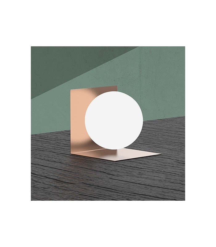 Table or bedside table lamp with frame in bent metal sheet available in white, black, satin gold and satin copper finishes.
