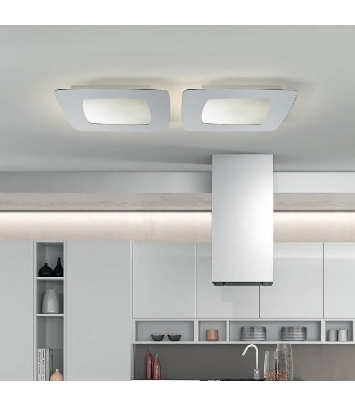 Inspired by an essential and modern concept of design, the Stone ceiling lamp features a frame in shaped and white painted metal, that recalls the idea of stones and bricks, and a diffuser in opal white glass, that spreads light in the surrounding space without glaring and creating an inviting and warm atmosphere.