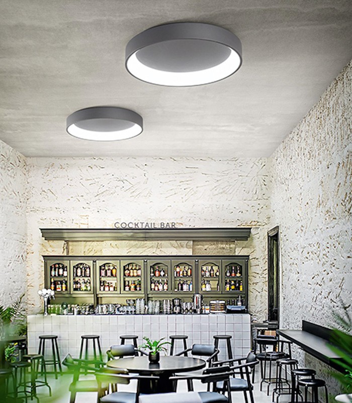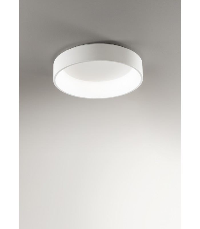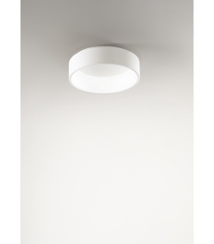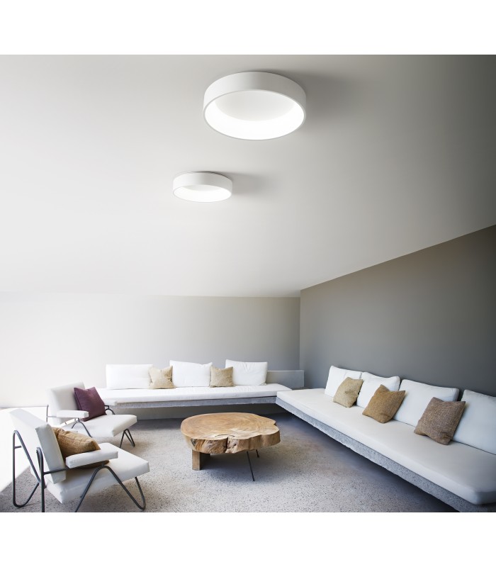 The Band Diodi ceiling lamp by Affralux consists of a circular frame, in white painted satin aluminum or in gray, sand or coffee, that houses the LED light source shielded by a screen in PMMA that achieves an excellent light distribution without glaring.