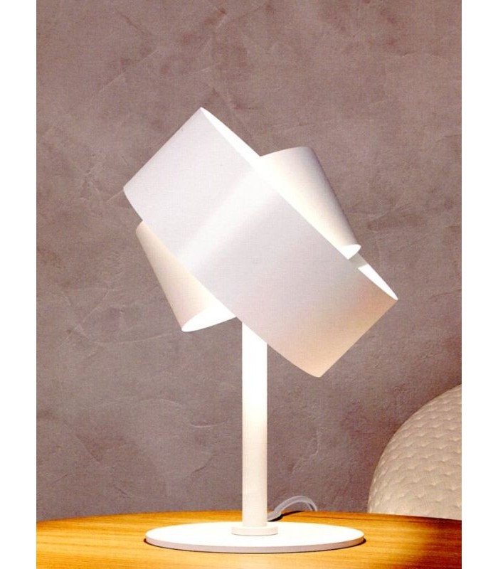 Marchetti Pura table lamp is inspired by an essential concept of design achieved through metal strips that intertwine to form a circle which spreads a suggestive bright effect which captures the attention with its impressive aesthetic appeal.