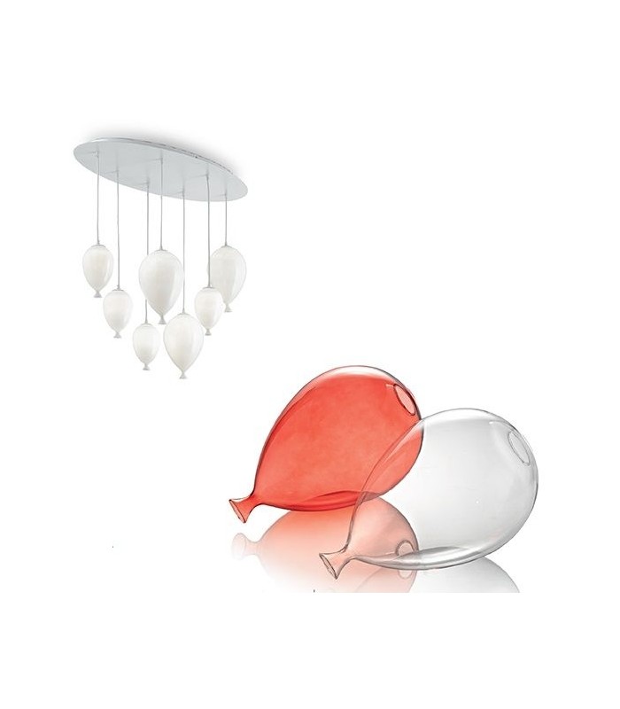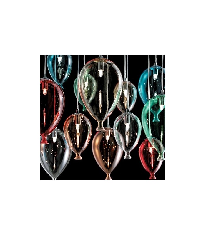 This fun looking suspension lamp features a metal frame and balloon-shaped handcrafted blown glass diffusers.