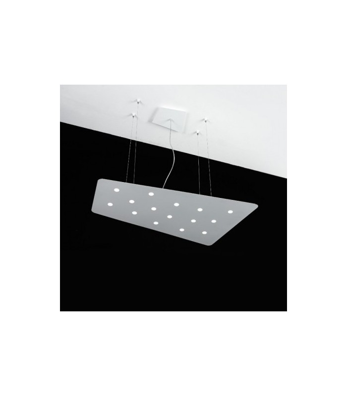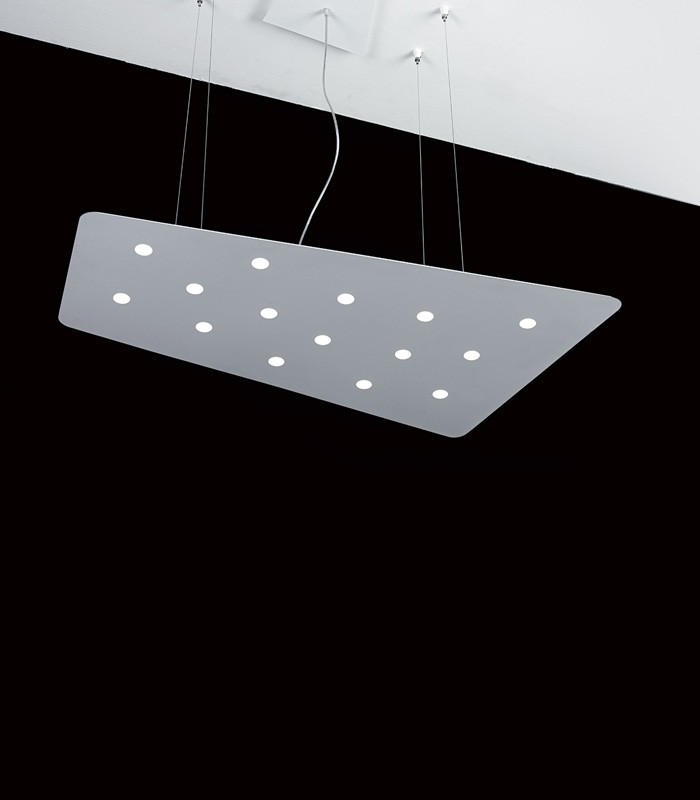 The Fuorisquadra suspension lamp features a painted steel frame, available in white, corten, dove gray and gray, that stands out for its elegant thinness and for its innovative push mechanism that allows easy maintenance.