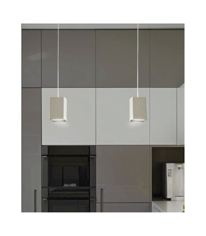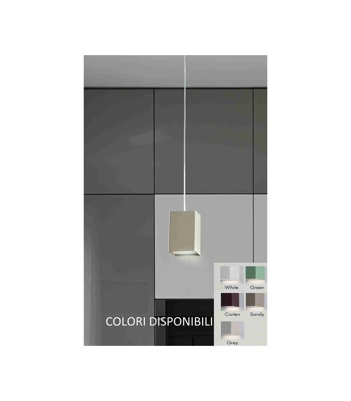 Cattaneo Cubick suspension lamp is a square metal lamp painted in several colors: white, sand and gray.