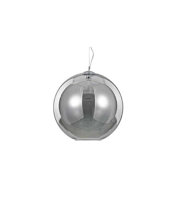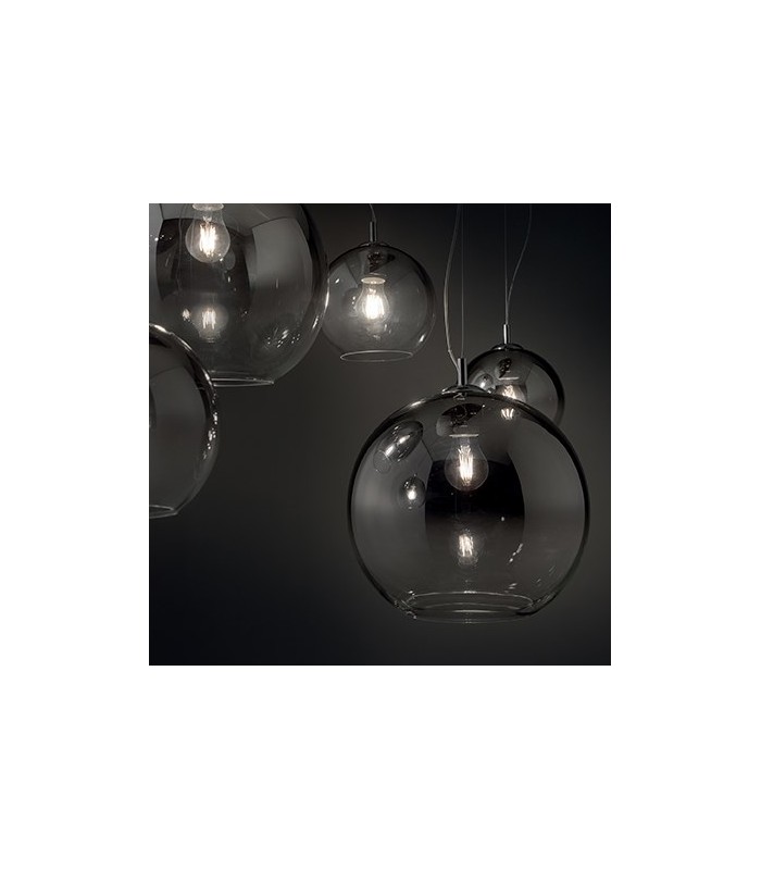 Nemo features a transparent blown glass diffuser coated with smoky effect or copper effect, while the base and the frame are made of chrome metal. Available in three sizes.