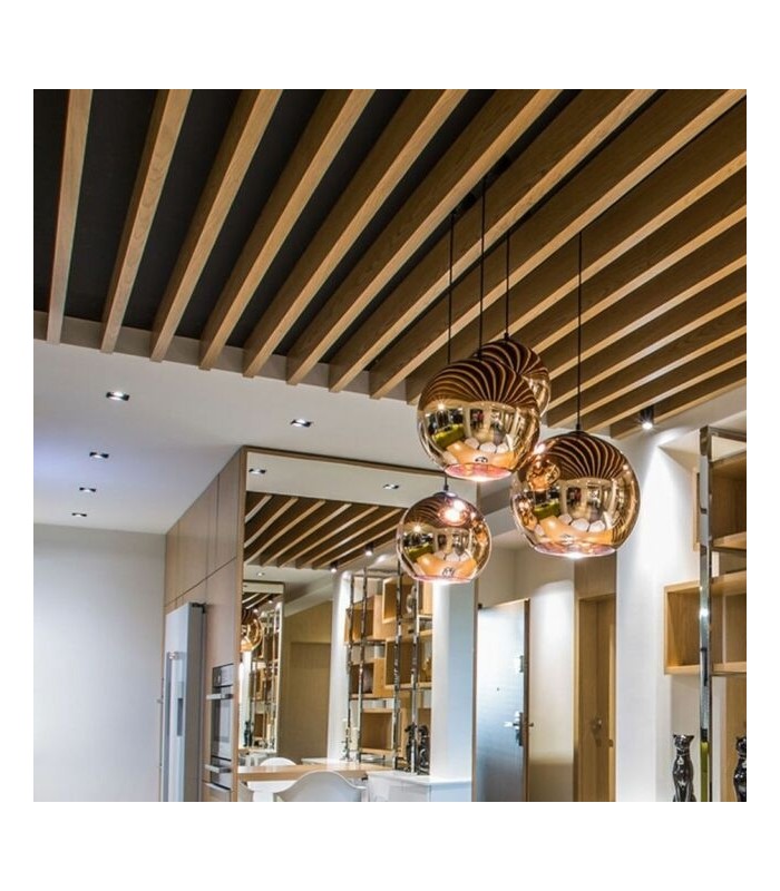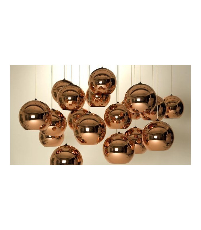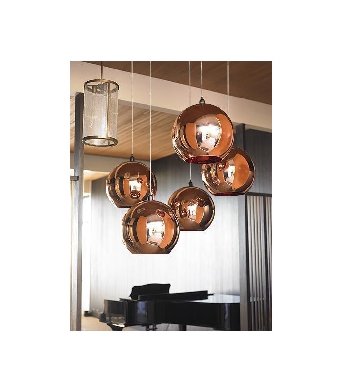 Suspension lamp consisting of a transparent blown glass diffuser coated with smoky effect or copper effect. Available in three sizes.