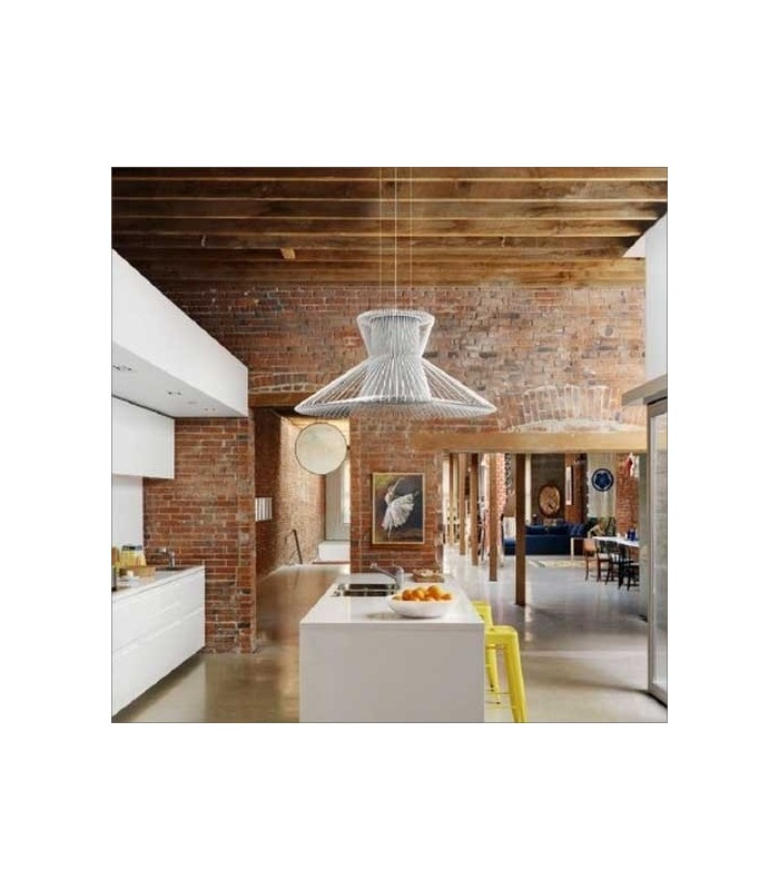 This tasteful lamp enlightens the surrounding space with its suggestive diffuse and direct light emission that furnishes with elegance to illuminate your living areas, to illuminate the conversation areas, to illuminate the relaxation areas and the kitchens.