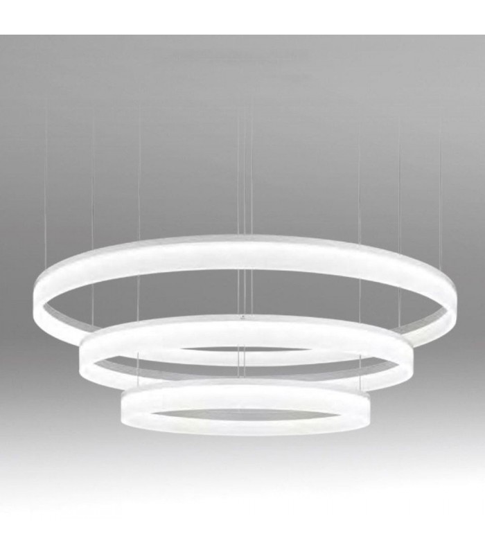 Its sinuous and circular design, made up of three concentric circles that seem to float in the air, creates captivating geometries of lights and shapes that add visual interest to the surrounding environment. These circles can be arranged in linear or inclined compositions, according to your personal requirements. (See images)