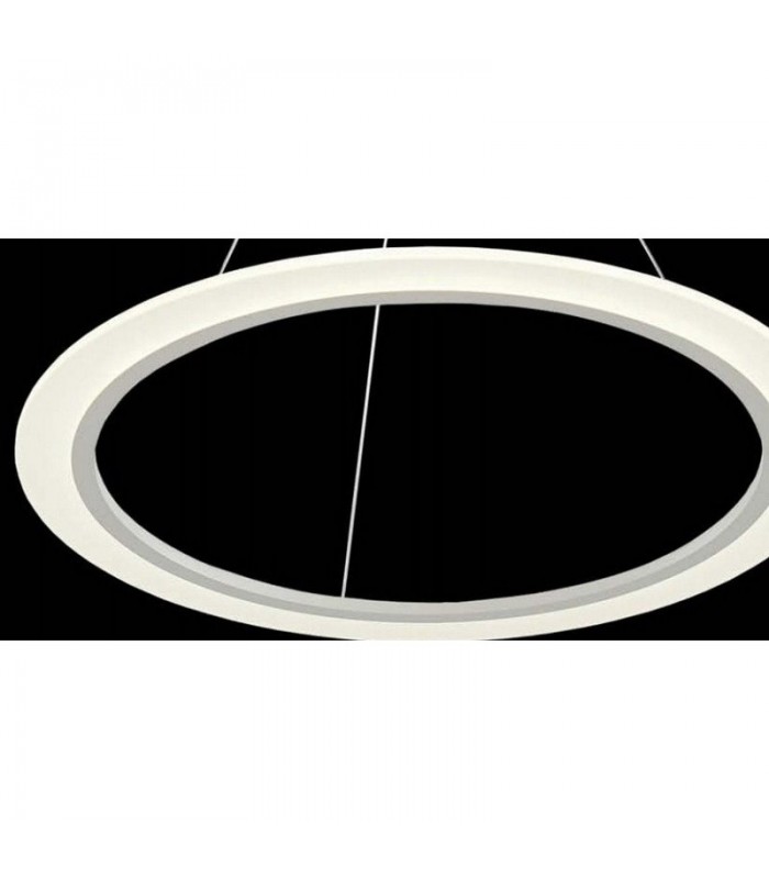 The Acryled single suspension lamp consists of a circular metal frame, finished in satin aluminum, surrounded by a circular external diffuser in white acrylic that allows the LED light source to achieve a harmonious light emission.