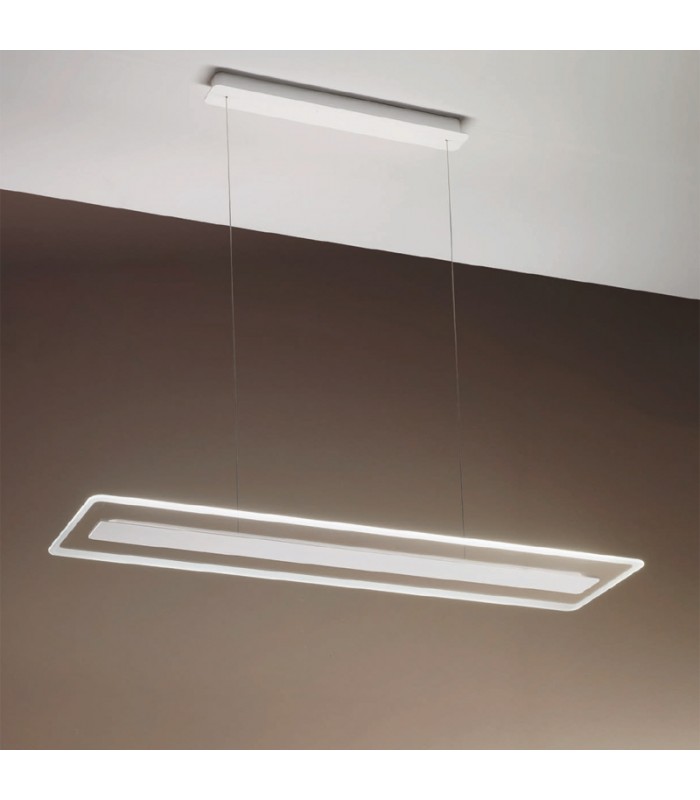 The Antille suspension lamp by Linea Light surprises even when it is switched off since it appears as an elegant floating element, light and thin. When the light is on, it will amaze you for its brightness and for its impressive fascination: the edges of the glass plate light up becoming white and at the same time outline the straight and sinuous lines of the diffuser, while the soft and diffused light is spread in the surrounding space.