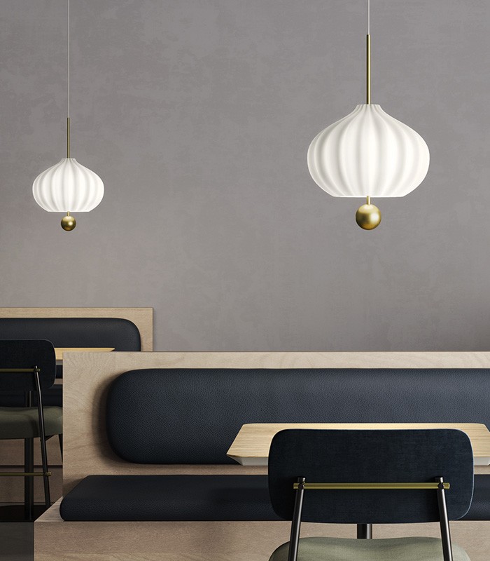 Lilli di Kundalini is a suspension lamp composed of a satin brass structure and an elegant white hand-blown glass diffuser. The soft and efficient light emission and its contemporary design make Kundalini Lilli a magical suspension lamp!