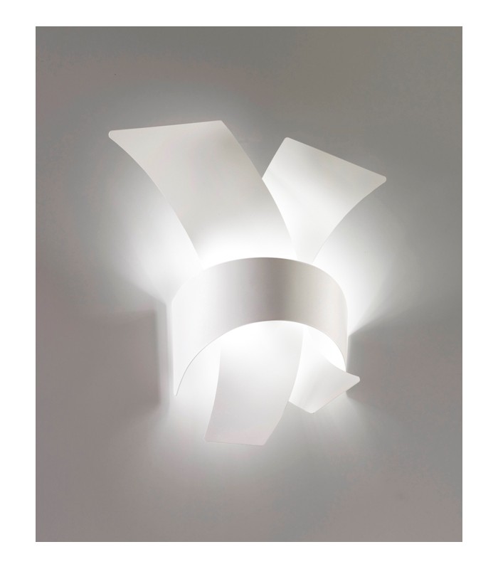The Calypso wall lamp generates an interesting indirect light produced by four integrated and dimmable LEDs. An eye- catching effect that attracts our gaze and that is due to the charming intertwining between the two white elements and the central strip that connects them.