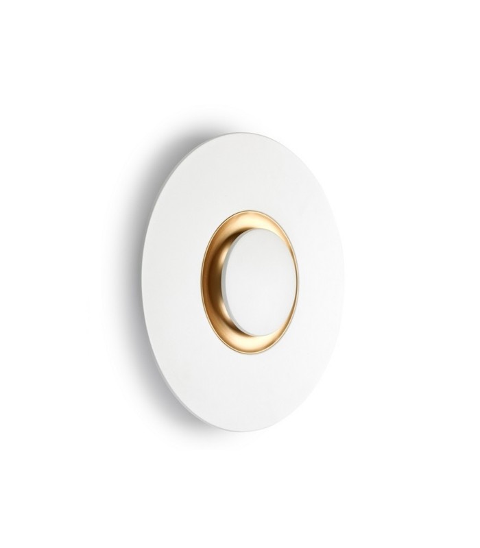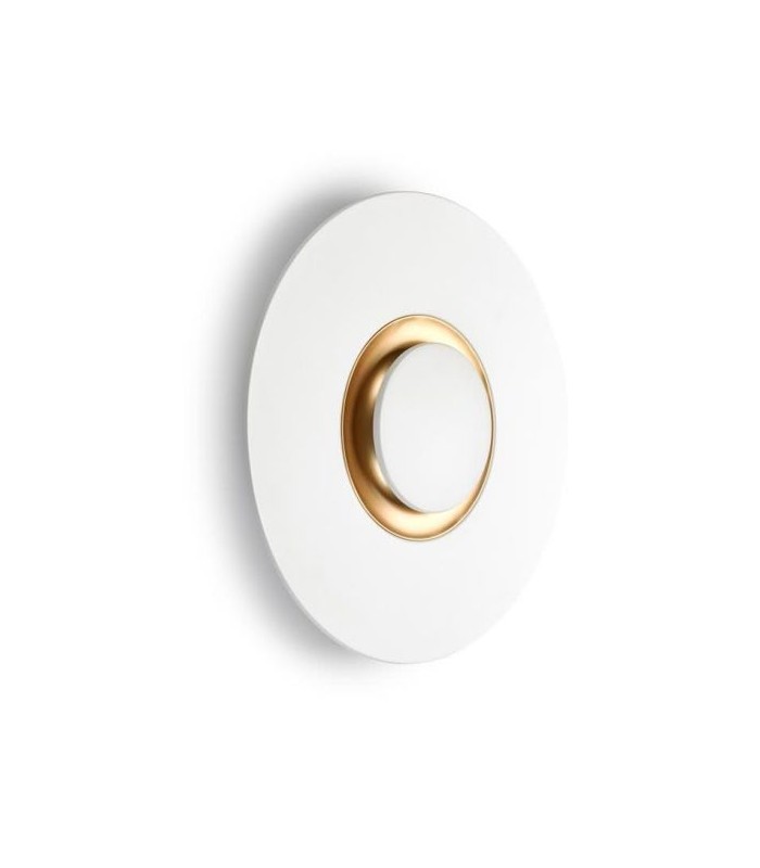Leds C4 Big Bang wall lamp consisting of an aluminum frame painted in white and brushed brass inside.