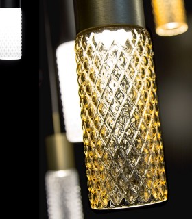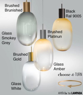 Ceiling lamp with plissè fabric shade available in white, black and ivory. Satin glass pendant. LARGE CEILING VERSION.