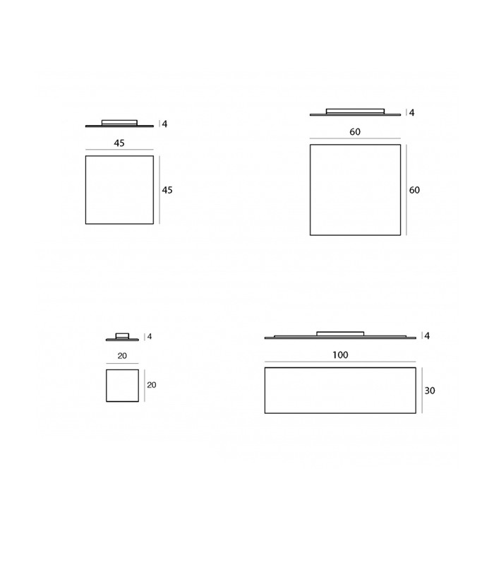 LED ceiling lamp with metal frame, painted in wrinkle white, and satin polymethylmethacrylate diffuser. Available in four sizes.