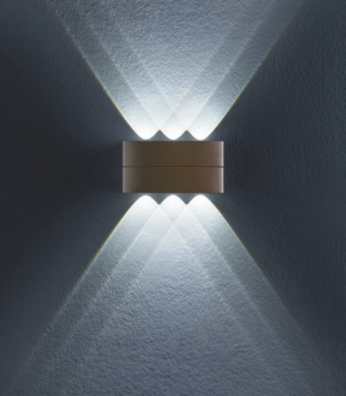 Redo Fabo outdoor wall lamp it is equipped with six POWER LEDs three in the upper part and three in the lower part to obtain direct and indirect light and conical light flows with 35° optics.