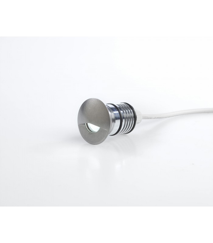Recessed footpath wall LED, turned steel recessed AISI 304 spot with POWER LED and with antiglare protection.