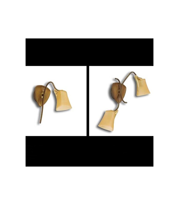 Iron wall lamp finished in rust color and diffuser in amber color glass.
