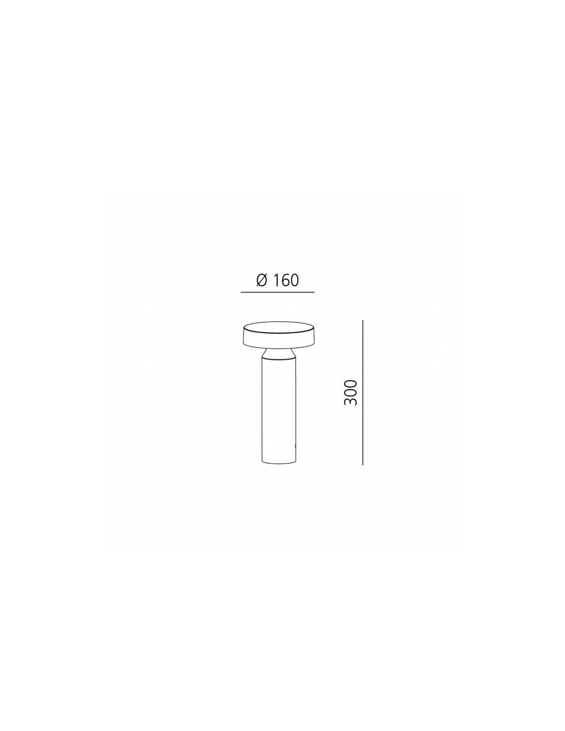 - Moonlight: H 30 cm, D base 7,6 cm, D superiore 16 cm - LED CRI80 - 10W - 700lm - 3000K - Beam 90° - IP65