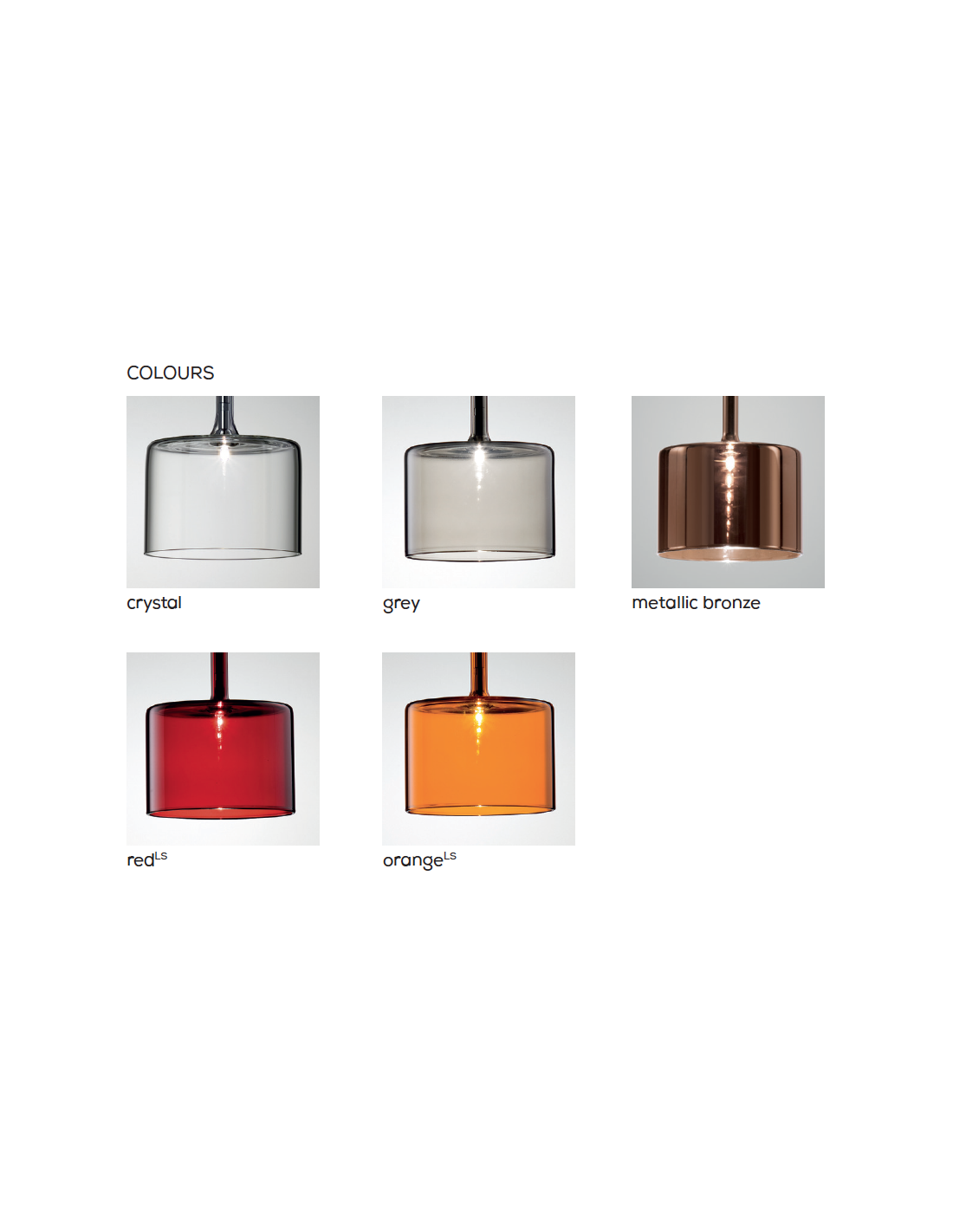 Glass suspension lamp consisting of a chrome metal frame, available in crystal, metallic bronze, red or grey colours. Available in three sizes.