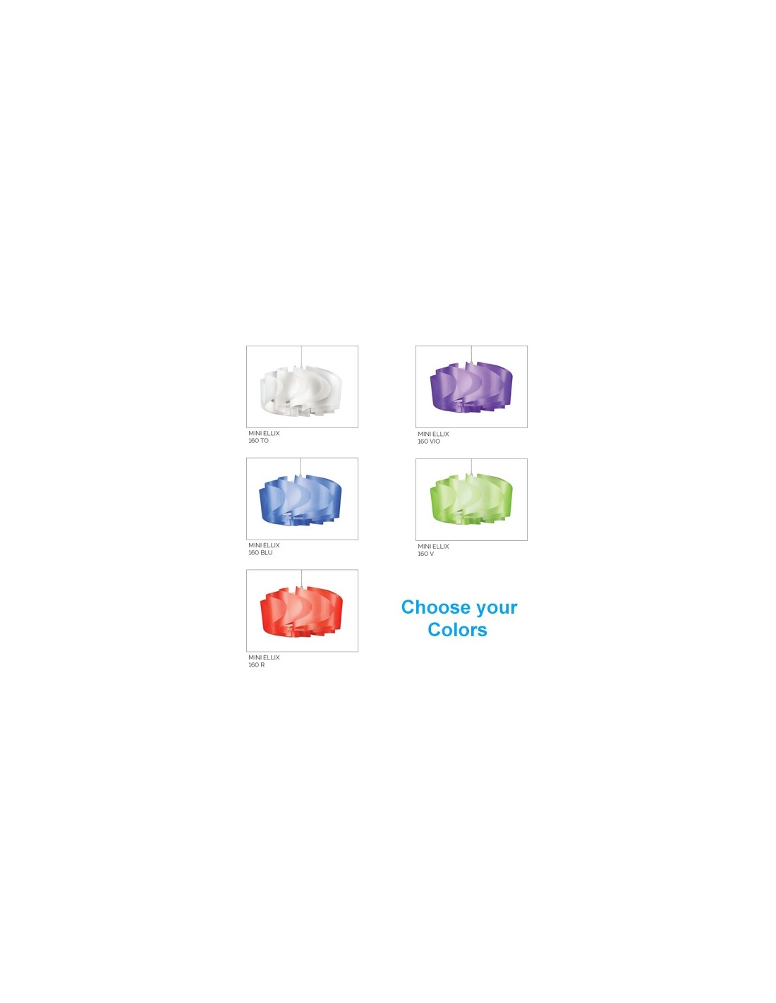The Mini Ellix suspension lamp consists of a POLILUX frame available in the following finishes: white or ice larch wood, while the versions Mini Ellix and Mini Sky Ellix are also available in the following colors: blue, purple, red, green, orange and transparent white.