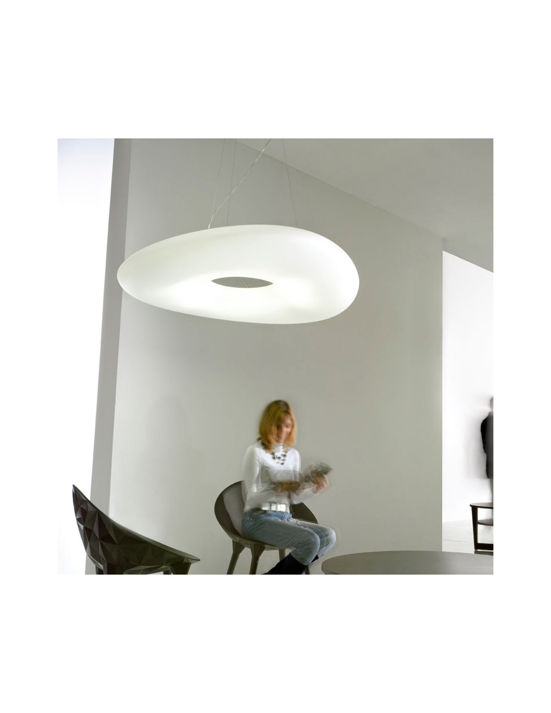 A lamp extremely sophisticated designed to fascinate with its suggestive light effects and sinuous lines, to surprise with its delightful ability to provide elegance to your living rooms, to illuminate the conversation areas or to illuminate enhance your kitchens dining tables.