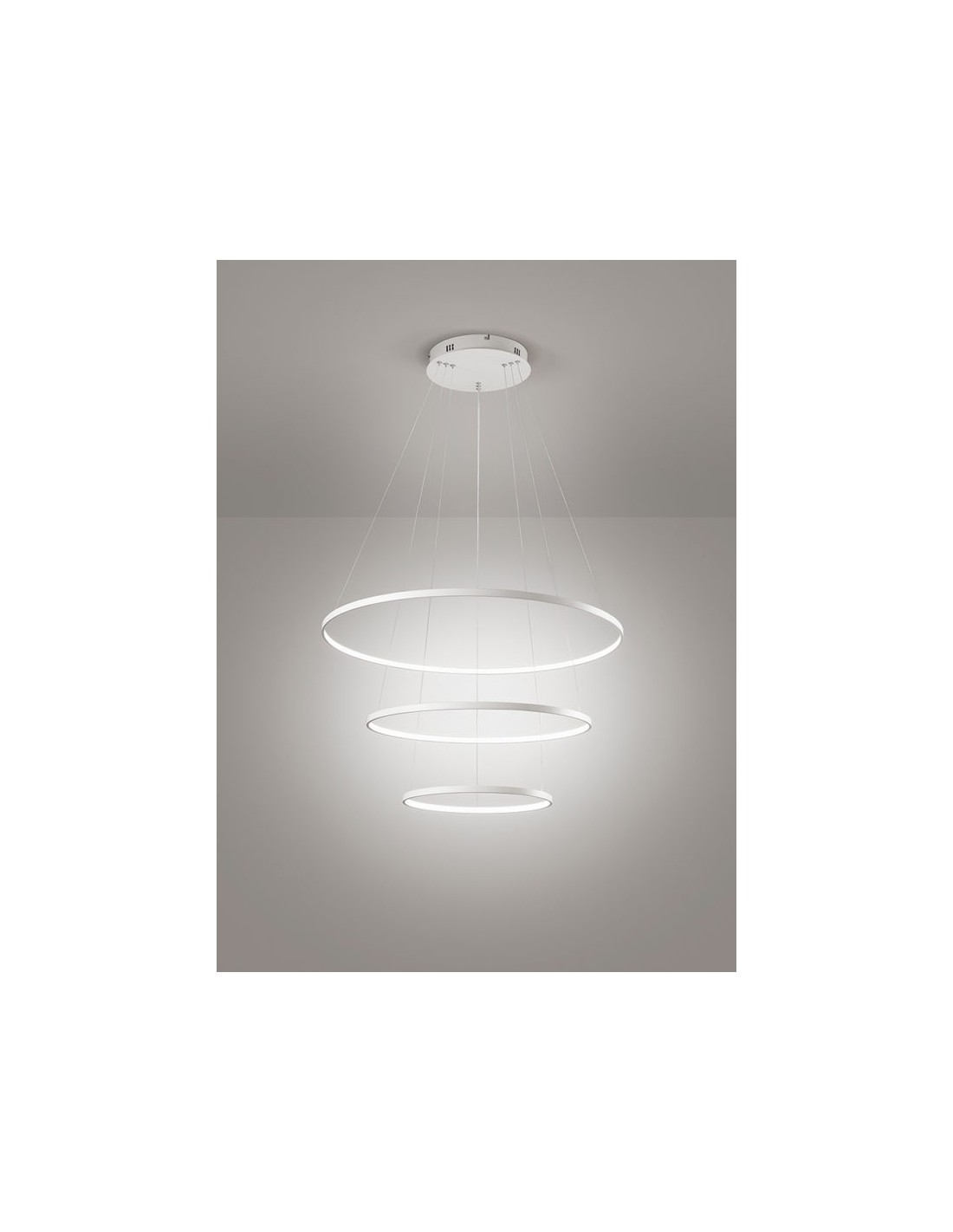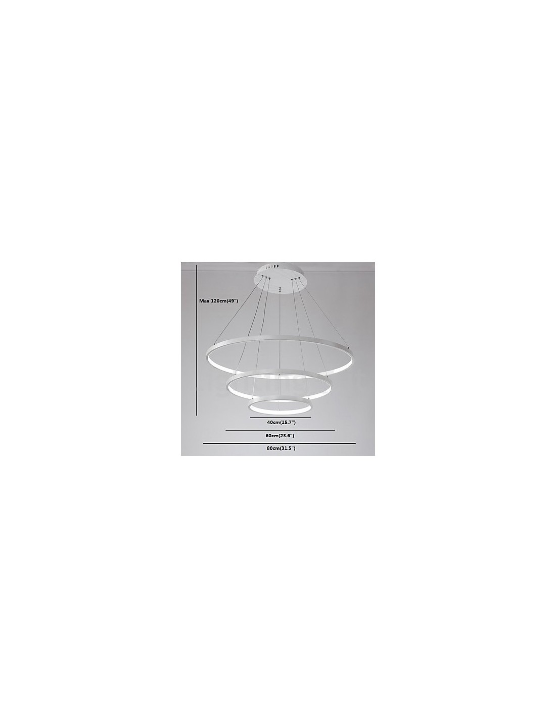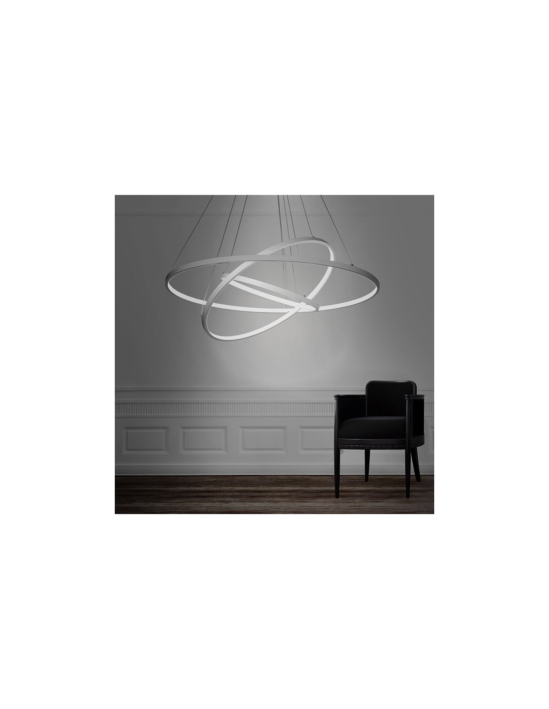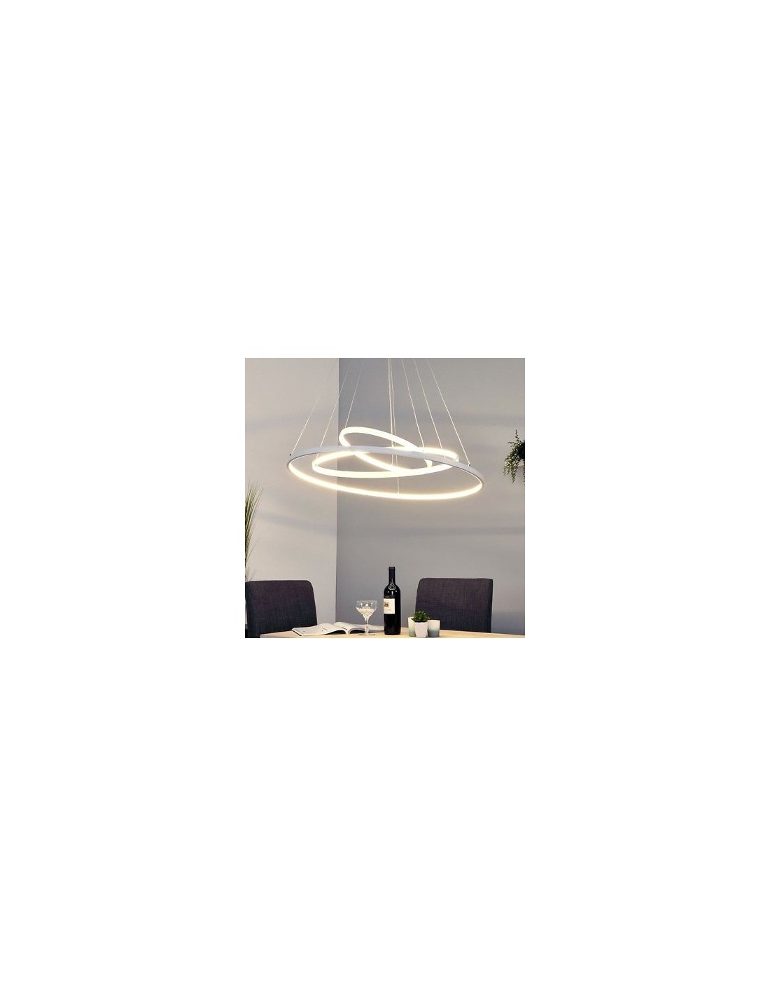 - Aluring triple ring: D min 40 cm, D medium 60 cm, D max 80 cm, H max 150 cm - STRIP LED 71W - 3200K - 4970lm