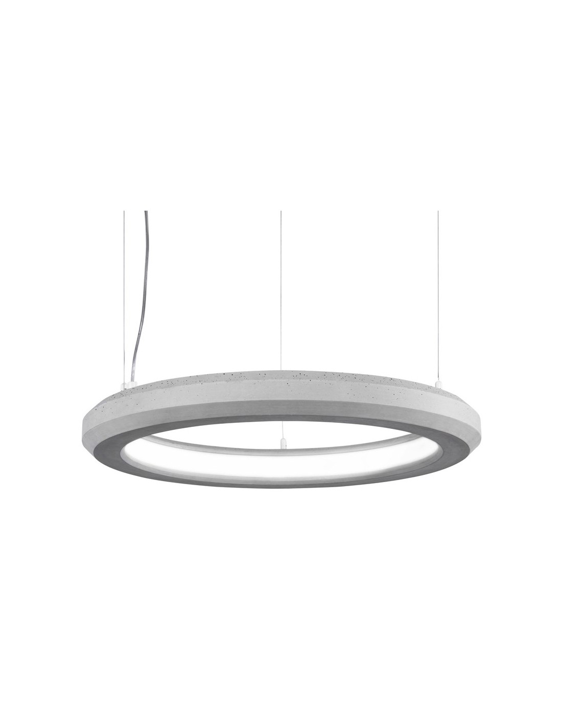 LED suspension lamp in circular cement frame with opal PMMA internal diffuser. Available in cement, white cement and brass colors.