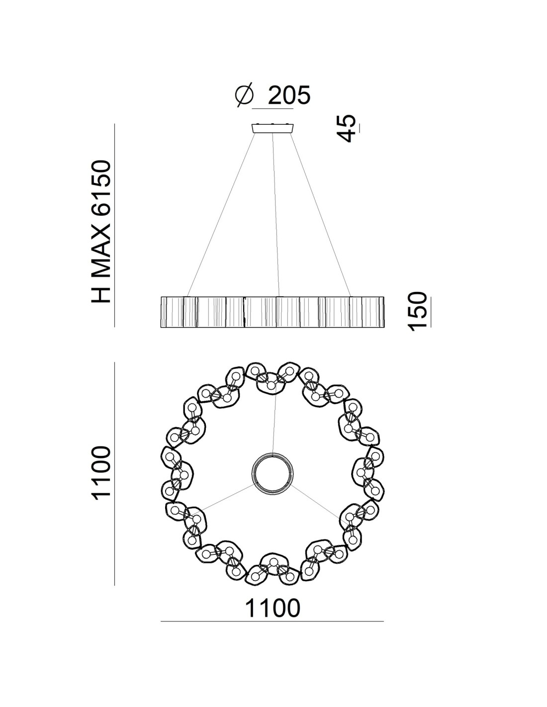 Honey: D 110 cm, H min 15 cm, H max 615 cm - topLED 105W - 2100 mA - 2700K - 10844 lm - CRI90