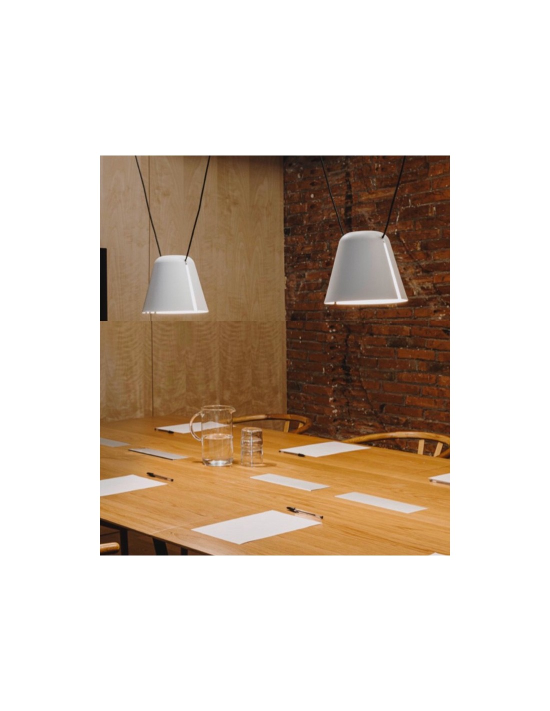 Attic is a modular, contemporary collection formed by two lampshades, one of which is conical and the other cylindrical, and it’s presented with a hanging system that can be used independently or in conjunction with other pieces. Attic achieves inviting settings by playing with the position of its cables and casings, with infinite compositional possibilities available. Finish available: Black, White. Two Lights version.