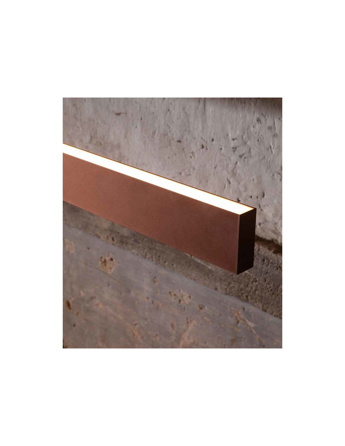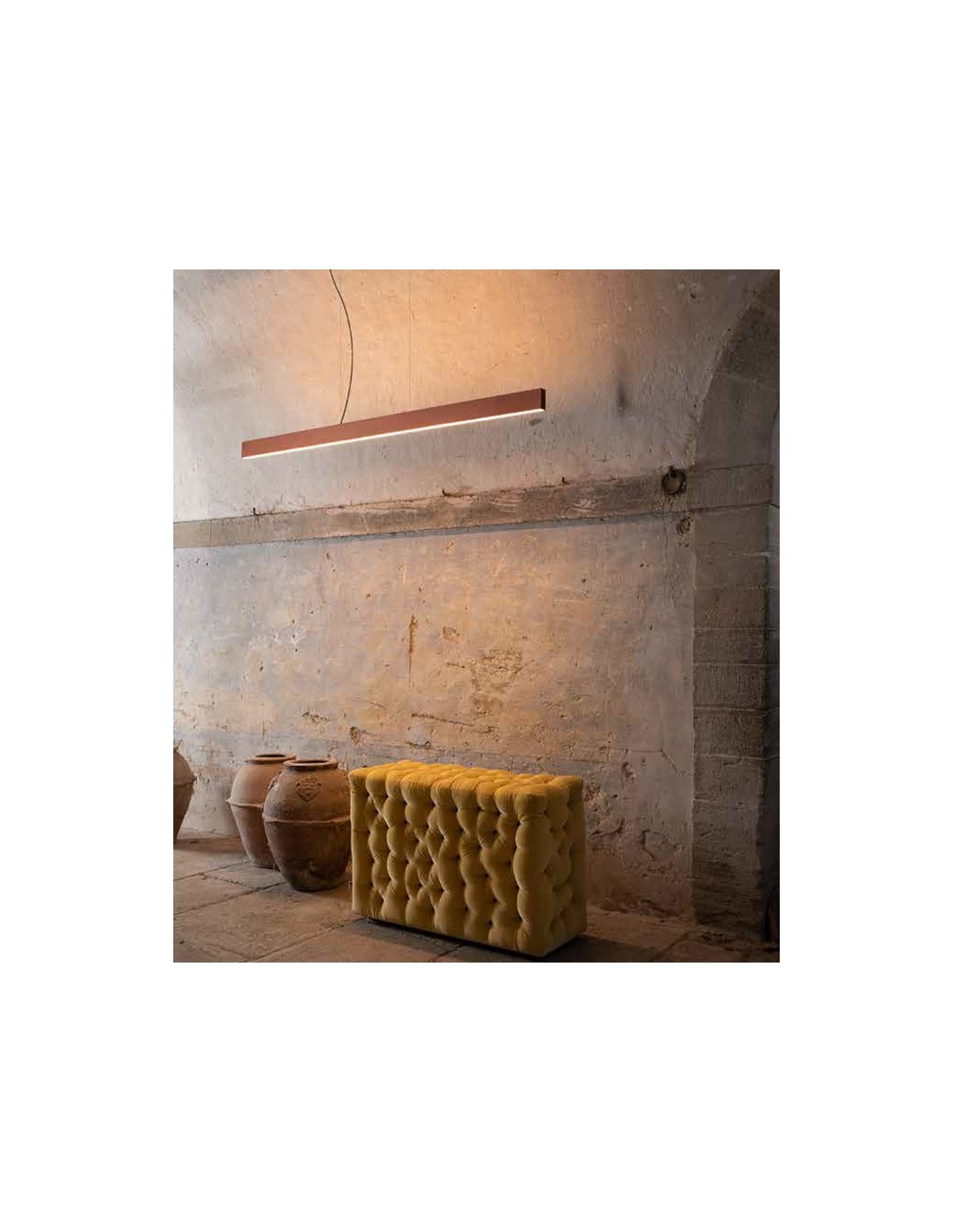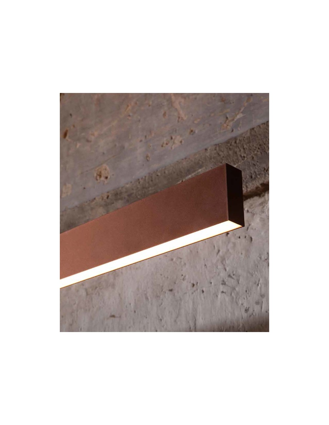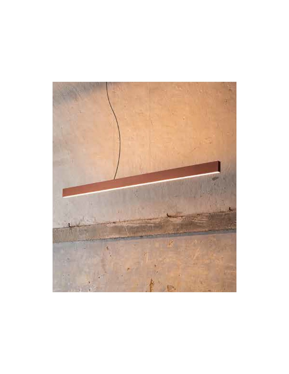 LED linear suspension lamp. Finish available: White, Black, Anodized aluminum, Gold leaf, Matt copper, Red, Blue, Green. Available in various sizes. Version double light: UP + Down.