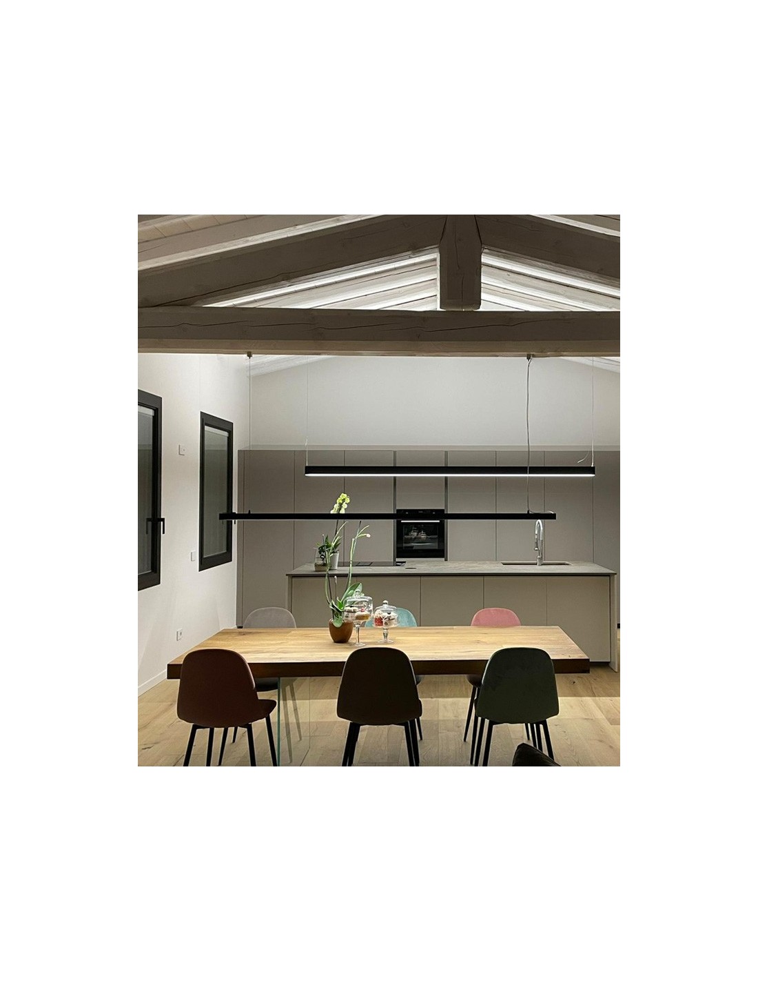The Nanoled suspensions ensure excellent visual comfort, their minimal design allows them to be inserted in various living and commercial contexts, therefore ideal for lighting living areas, dining tables, desks, meeting tables, offices, commercial and residential area.