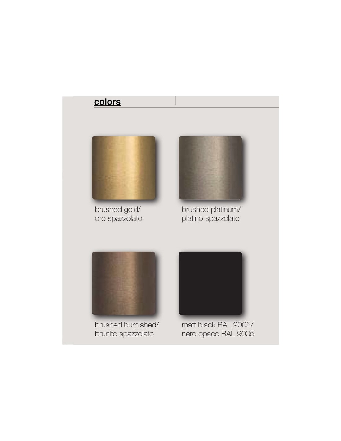 Suspension lamp available in the colors: matt black, brushed gold, brushed platinum, brushed burnished
