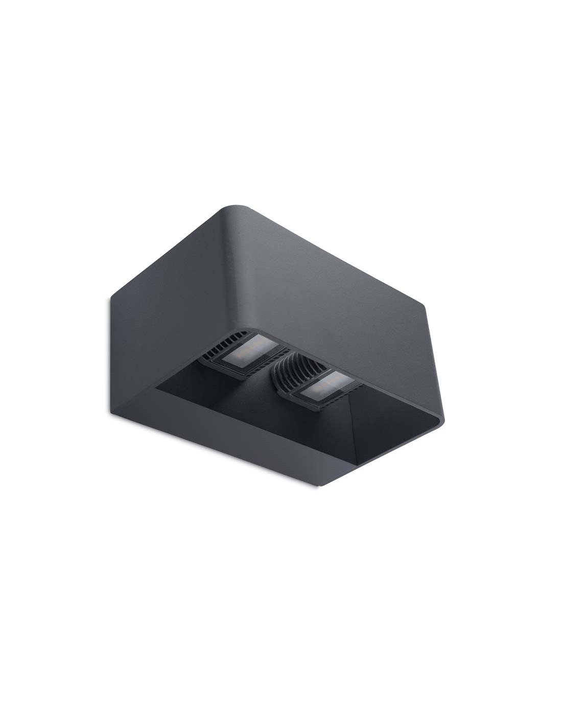 Outdoor LED wall lamp with powder coated die-cast aluminum frame in embossed finish available in gray. Adjustable internal shutters.