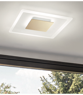 Lampada da soffitto in vetro termocurvato e montatura laccata bianco. Disponibile in diverse finiture e dimensioni.