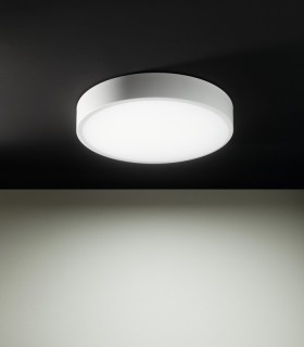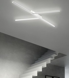 Lampada da soffitto in acciaio, disponibile in due diverse misure e nelle finiture bianco, bronzo, foglia oro e foglia argento.