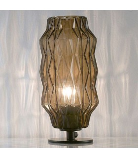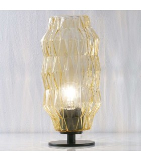 Lampada da tavolo con diffusore in fili di seta, lavorato a mano. Disponibile in diversi colori e struttura in cromo o in oro.