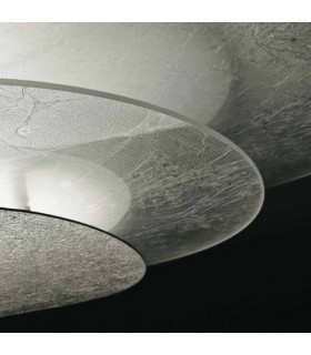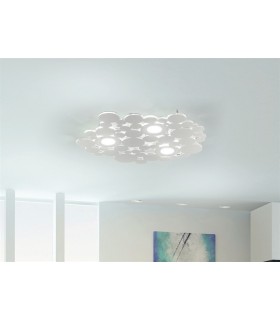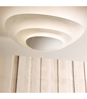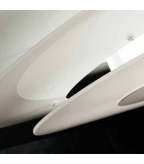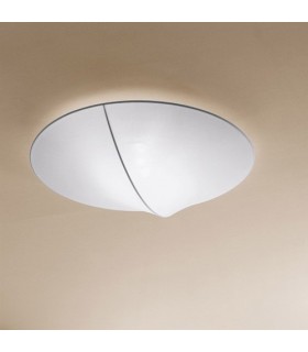 Lampada da soffitto in vetro termocurvato e montatura laccata bianco. Disponibile in diverse finiture e dimensioni.