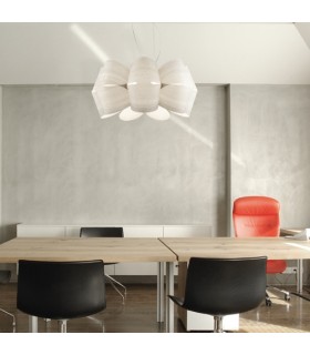 Lampada in sospensione disponibile in polilux legno larice bianco, larice ghiaccio ed in altri vari colori.