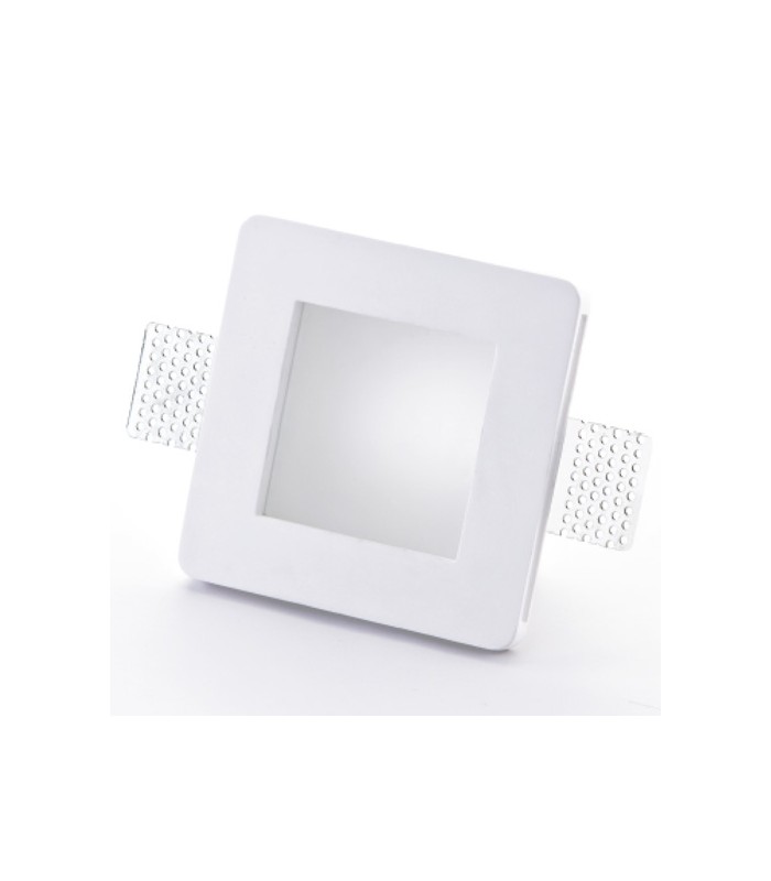 Montaggio incasso a scomparsa totale. Forma quadrato incavo, con schermo diffusore in vetro satinato.
