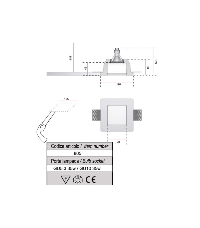 - ISYLUCE 805: Larghezza 12 X 12 cm, Profondità 10.9 cm, a faretto installato il foro diventerà 7 x 7 cm - Lampadina GU10 Led.Maggiori dettagli vedi scheda e descrizione prodotto.