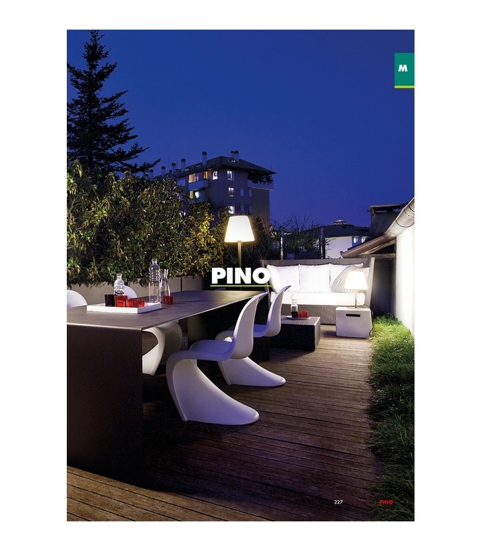 Pino Redo lampada da esterno emette luce morbida e diffusa perfetta per illuminare con eleganza gli ambienti esterni dall'arredamento moderno ideale per illuminare il terrazzo o per illuminare la zona relax della veranda.